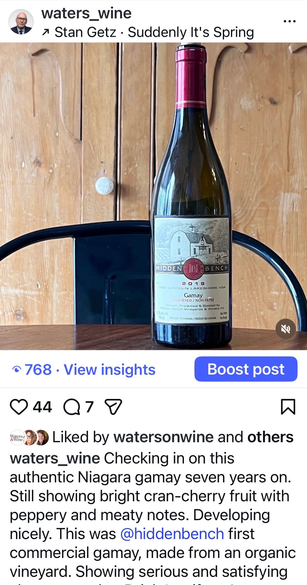Checking in on this authentic Niagara gamay seven years on. Still showing bright cran-cherry fruit with peppery and meaty notes. Developing nicely. This was @hiddenbench first commercial gamay, made from an organic vineyard. Showing serious and satisfying character today. Drink ‘em if you’ve got ‘em.