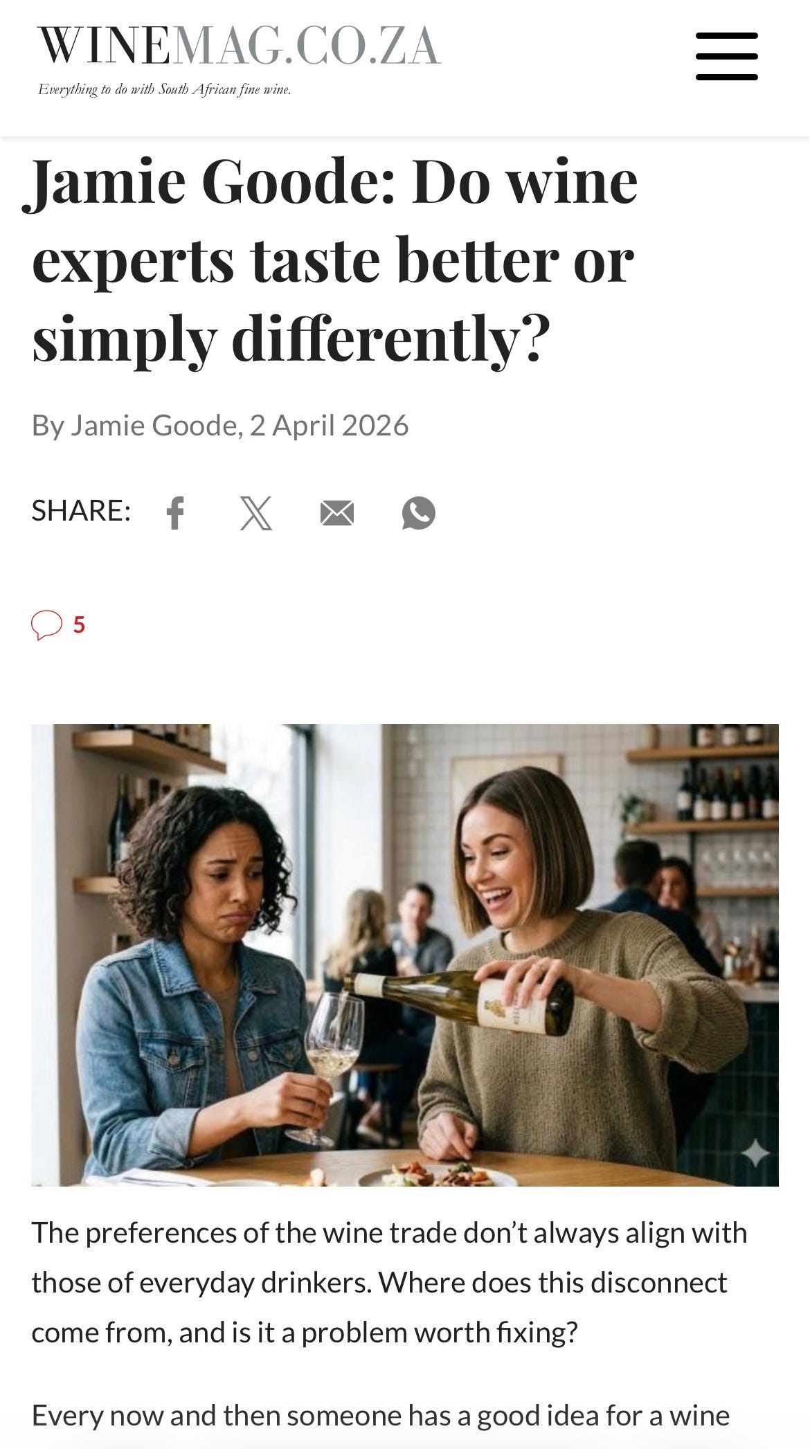 Jamie Goode: Do wine experts taste better or simply differently? (April 2, 2026, winemag.co.za)